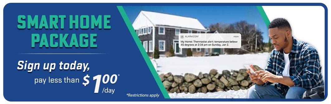 *Less than $1.00 a day reference based on Smart Home Package at $27.95 spread over 31-day month and 3-year agreement. Other taxes, fees, and restrictions may apply.