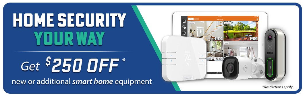 ‡Approved credit required for 0% APR financing on equipment. All equipment sold separately & may require separate installation for all monitoring packages. New equipment upgrades with a new monitoring plan may require a new agreement. Not all existing security equipment is compatible, and purchase of additional equipment may be necessary. Other taxes, fees & restrictions may apply. See associate for details.